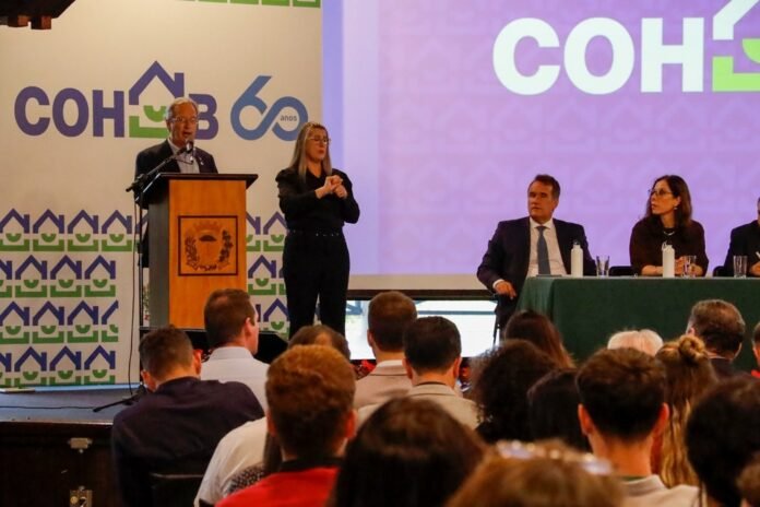 Com o auditório do Complexo Imap Barigui lotado por autoridades, pessoas de diversas comunidades e funcionários, a Companhia de Habitação Popular de Curitiba (Cohab) comemorou os 60 anos de fundação na última quinta-feira (8/5). A cerimônia, que contou com a participação do vice-prefeito e secretário municipal de Desenvolvimento Econômico e Inovação, Paulo Martins, foi marcada por homenagens e o lançamento da nova identidade visual da Companhia.